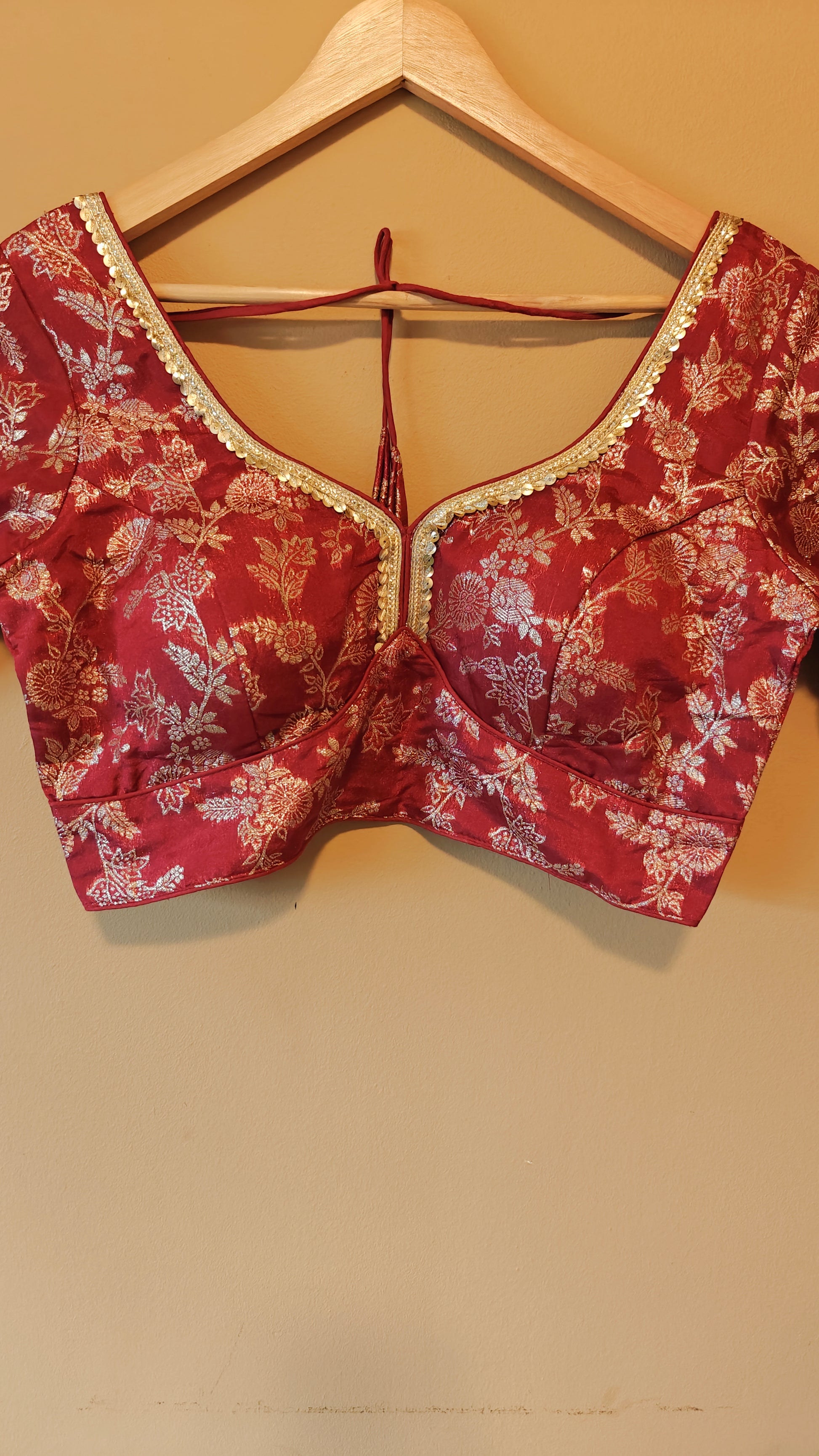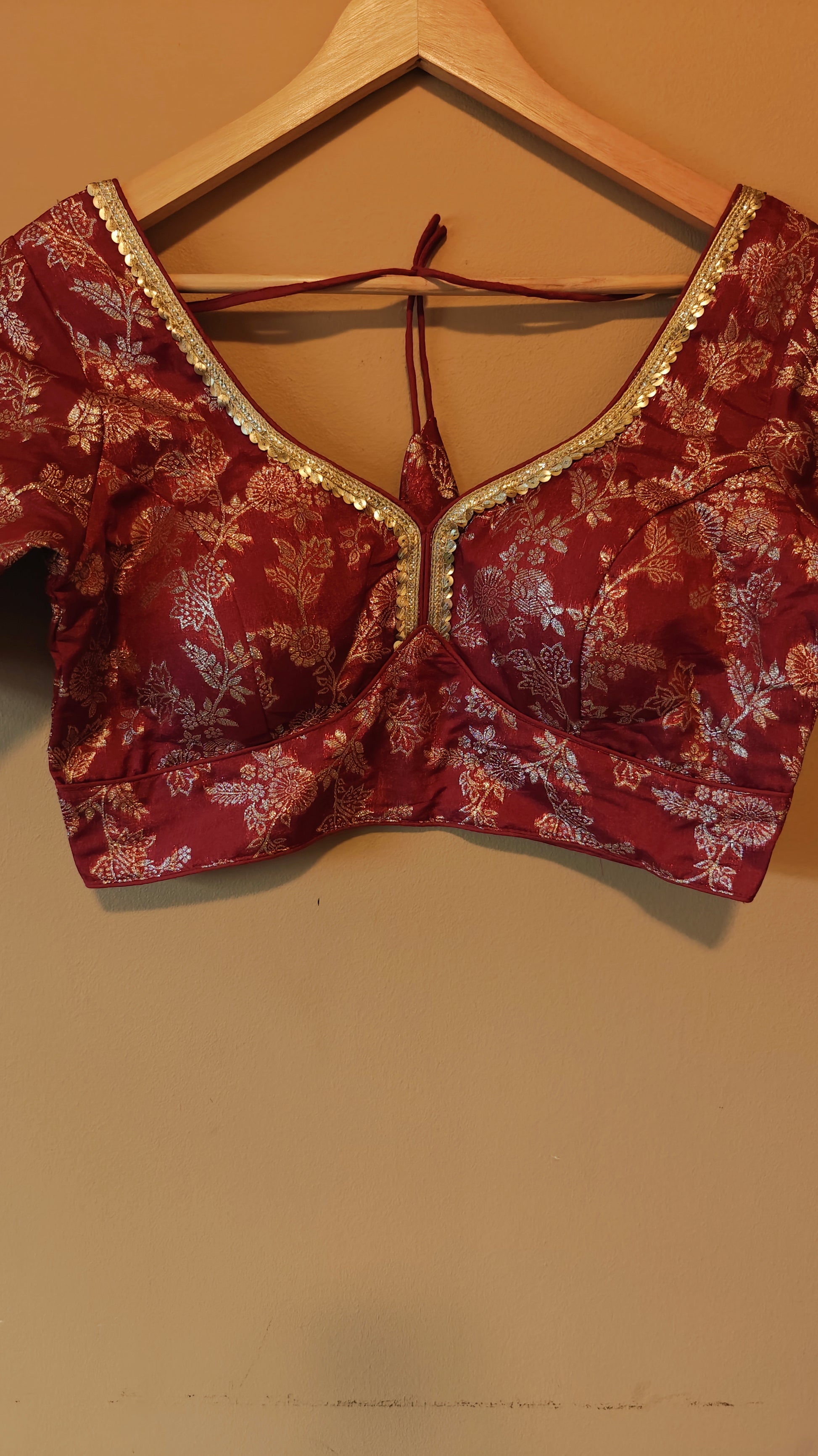 Upgrade your ethnic wardrobe with this stunning designer blouse, thoughtfully crafted to blend elegance and versatility. Perfectly tailored for a size 38 chest, it comes with an additional margin to adjust seamlessly for sizes up to 40 or 42, ensuring a custom fit that complements your style.